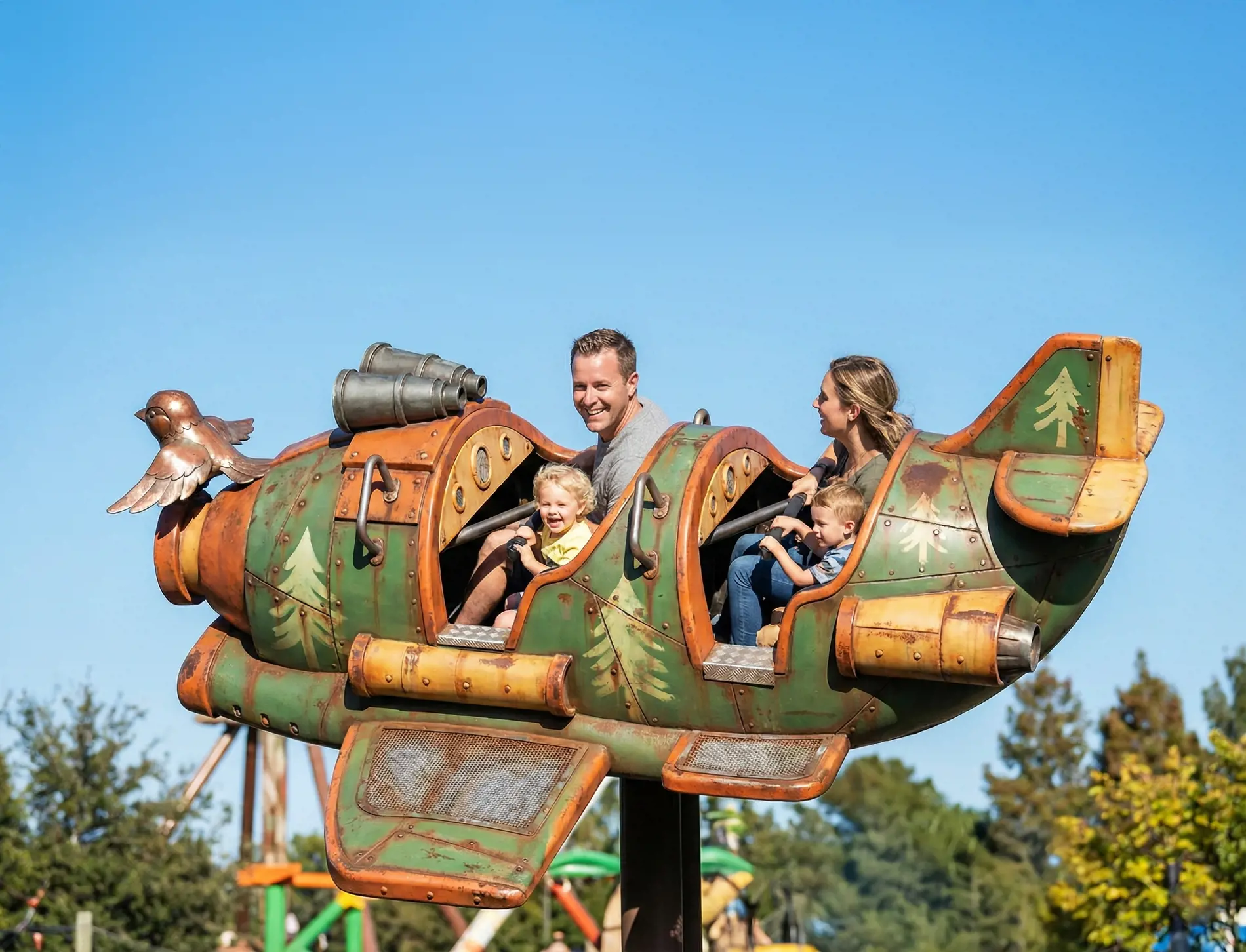 Som rigtige piloter styrer man selv flyvemaskinen rundt mellem de grønne træer og højt op mod himlen i de splinternye, tematiserede fly. BOARDING COMPLETED - klar til afgang og go’ tur!